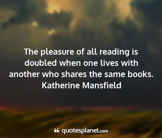 The pleasure of all reading is doubled when one lives with another who shares the same books.Katherine Mansfield