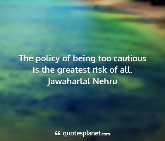 Jawaharlal nehru - the policy of being too cautious is the greatest...