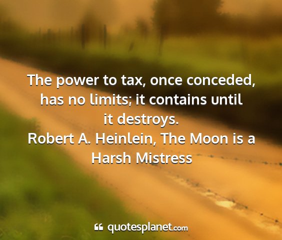 The power to tax, once conceded, has no limits; it contains until it destroys.Robert A. Heinlein, The Moon is a Harsh Mistress