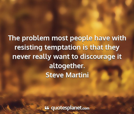 The problem most people have with resisting temptation is that they never really want to discourage it altogether.Steve Martini