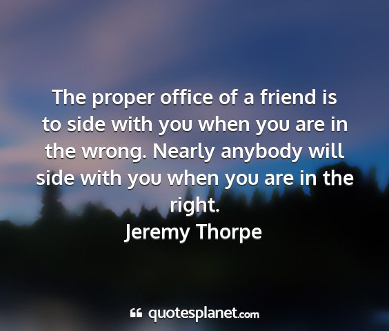 The proper office of a friend is to side with you when you are in the wrong. Nearly anybody will side with you when you are in the right.Jeremy Thorpe