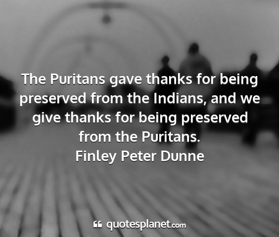 The Puritans gave thanks for being preserved from the Indians, and we give thanks for being preserved from the Puritans.Finley Peter Dunne