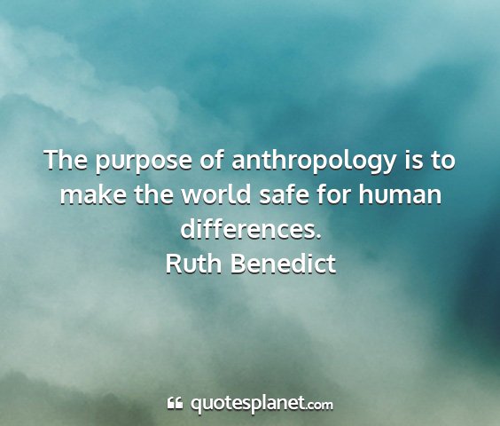 The purpose of anthropology is to make the world safe for human differences.