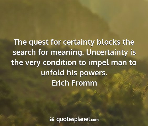 The quest for certainty blocks the search for meaning. Uncertainty is the very condition to impel man to unfold his powers.Erich Fromm