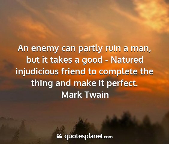 An enemy can partly ruin a man, but it takes a good - Natured injudicious friend to complete the thing and make it perfect.Mark Twain