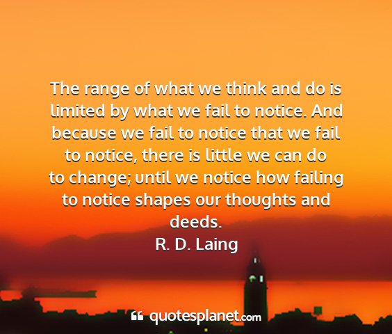 The range of what we think and do is limited by what we fail to notice. And because we fail to notice that we fail to notice, there is little we can do to change; until we notice how failing to notice shapes our thoughts and deeds.R. D. Laing