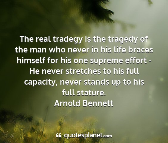 The real tradegy is the tragedy of the man who never in his life braces himself for his one supreme effort - He never stretches to his full capacity, never stands up to his full stature.Arnold Bennett