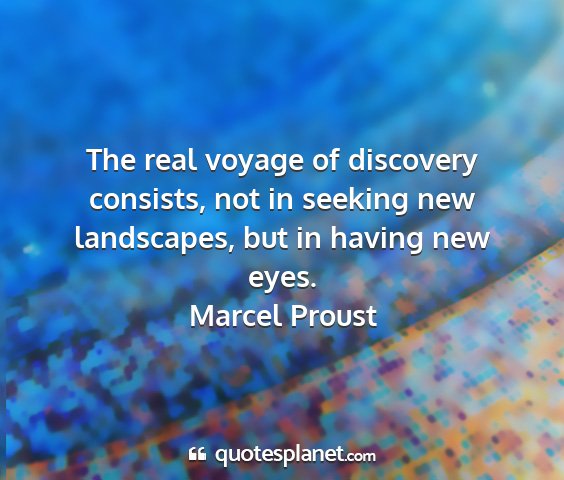 The real voyage of discovery consists, not in seeking new landscapes, but in having new eyes.Marcel Proust