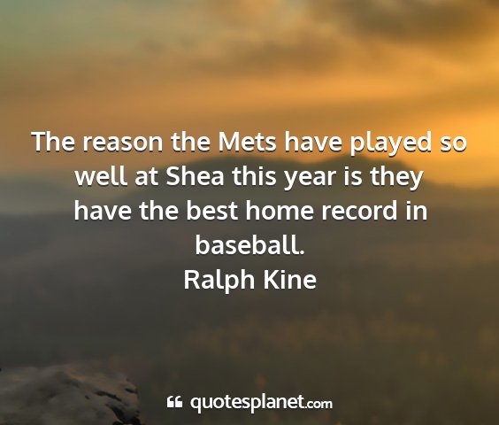 The reason the Mets have played so well at Shea this year is they have the best home record in baseball.Ralph Kine