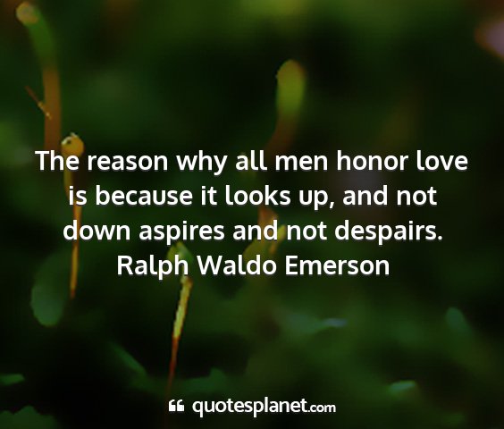 The reason why all men honor love is because it looks up, and not down aspires and not despairs.Ralph Waldo Emerson