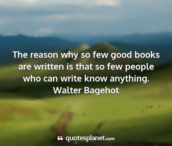The reason why so few good books are written is that so few people who can write know anything.Walter Bagehot