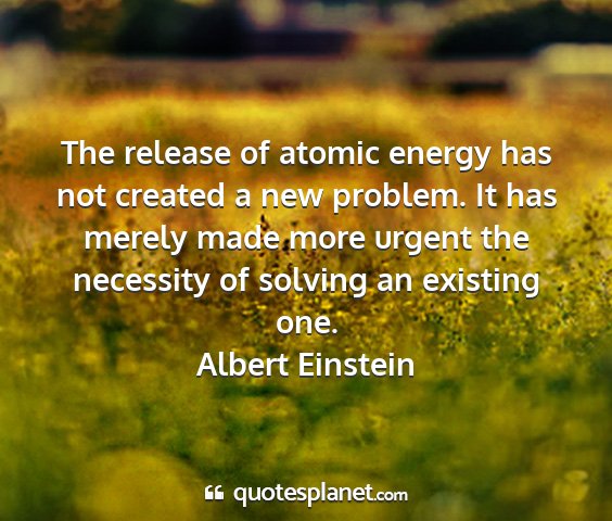 The release of atomic energy has not created a new problem. It has merely made more urgent the necessity of solving an existing one.Albert Einstein