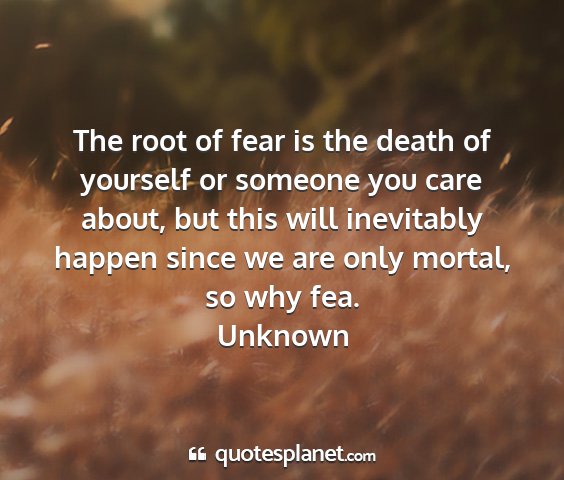 The root of fear is the death of yourself or someone you care about, but this will inevitably happen since we are only mortal, so why fea.Unknown