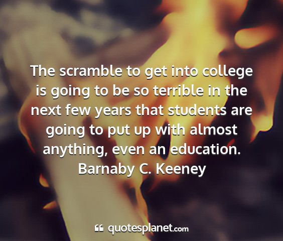 The scramble to get into college is going to be so terrible in the next few years that students are going to put up with almost anything, even an education.Barnaby C. Keeney