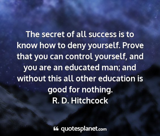 The secret of all success is to know how to deny yourself. Prove that you can control yourself, and you are an educated man; and without this all other education is good for nothing.R. D. Hitchcock