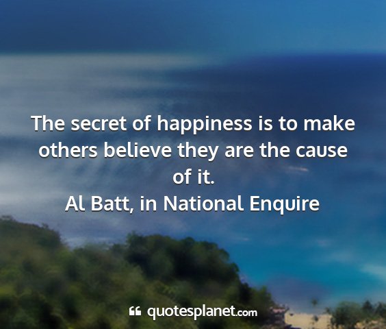 The secret of happiness is to make others believe they are the cause of it.Al Batt, in National Enquire