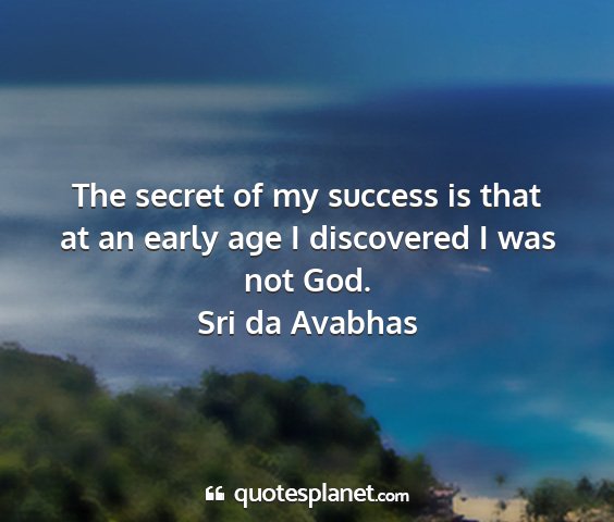 The secret of my success is that at an early age I discovered I was not God.
