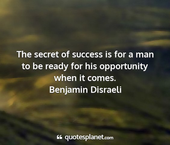 The secret of success is for a man to be ready for his opportunity when it comes.