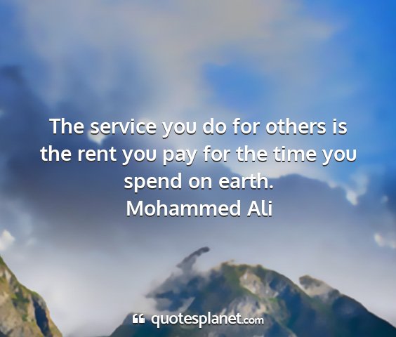 The service you do for others is the rent you pay for the time you spend on earth.