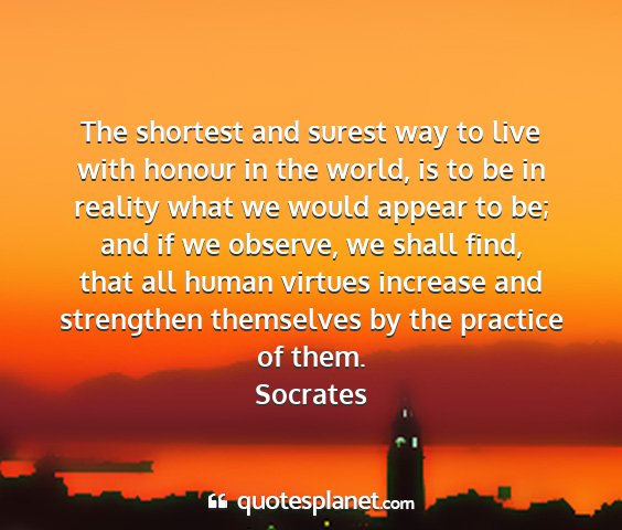 The shortest and surest way to live with honour in the world, is to be in reality what we would appear to be; and if we observe, we shall find, that all human virtues increase and strengthen themselves by the practice of them.Socrates