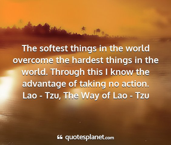 The softest things in the world overcome the hardest things in the world. Through this I know the advantage of taking no action.Lao - Tzu, The Way of Lao - Tzu