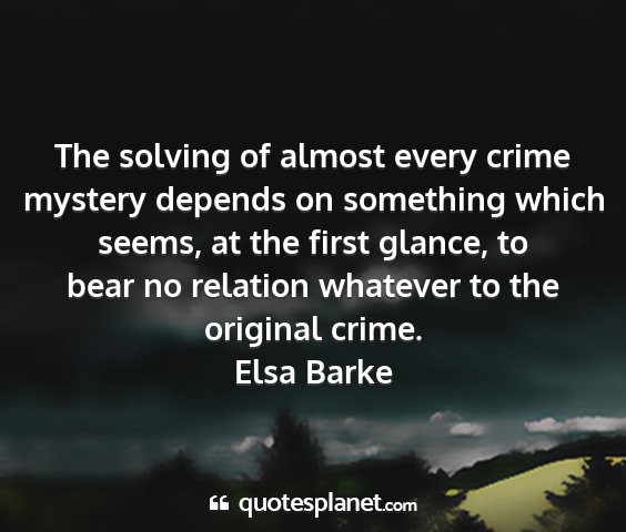The solving of almost every crime mystery depends on something which seems, at the first glance, to bear no relation whatever to the original crime.Elsa Barke