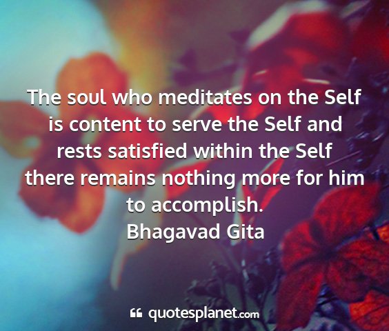 The soul who meditates on the Self is content to serve the Self and rests satisfied within the Self there remains nothing more for him to accomplish.Bhagavad Gita