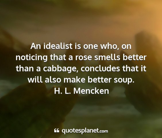 An idealist is one who, on noticing that a rose smells better than a cabbage, concludes that it will also make better soup.H. L. Mencken