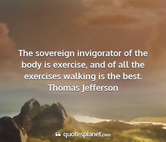 The sovereign invigorator of the body is exercise, and of all the exercises walking is the best.Thomas Jefferson