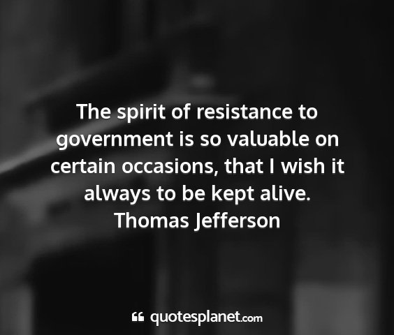 The spirit of resistance to government is so valuable on certain occasions, that I wish it always to be kept alive.Thomas Jefferson