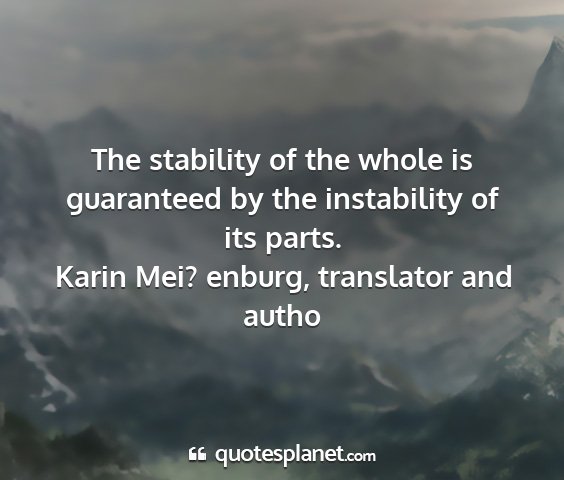 The stability of the whole is guaranteed by the instability of its parts.Karin Mei? enburg, translator and autho