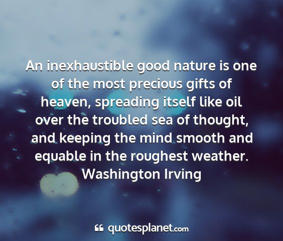 An inexhaustible good nature is one of the most precious gifts of heaven, spreading itself like oil over the troubled sea of thought, and keeping the mind smooth and equable in the roughest weather.Washington Irving