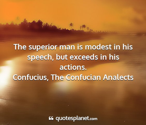 The superior man is modest in his speech, but exceeds in his actions.Confucius, The Confucian Analects