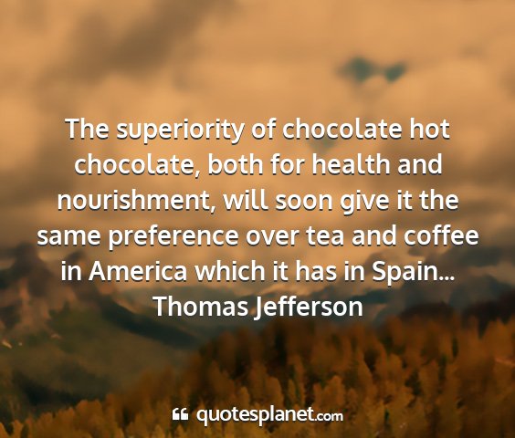 The superiority of chocolate hot chocolate, both for health and nourishment, will soon give it the same preference over tea and coffee in America which it has in Spain...Thomas Jefferson