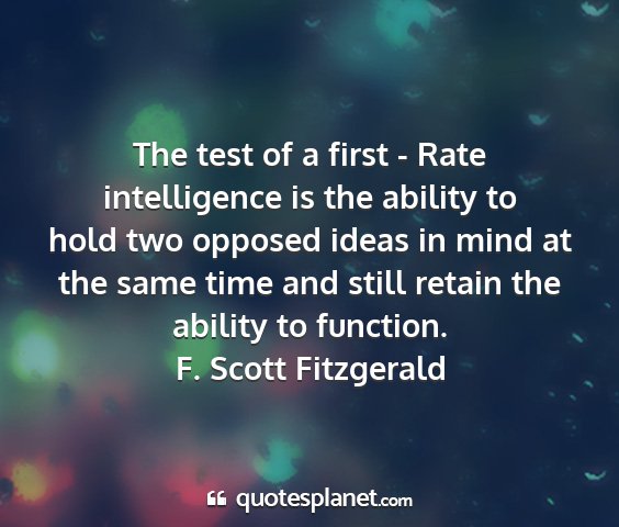 The test of a first - Rate intelligence is the ability to hold two opposed ideas in mind at the same time and still retain the ability to function.F. Scott Fitzgerald