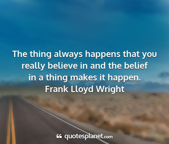 The thing always happens that you really believe in and the belief in a thing makes it happen.