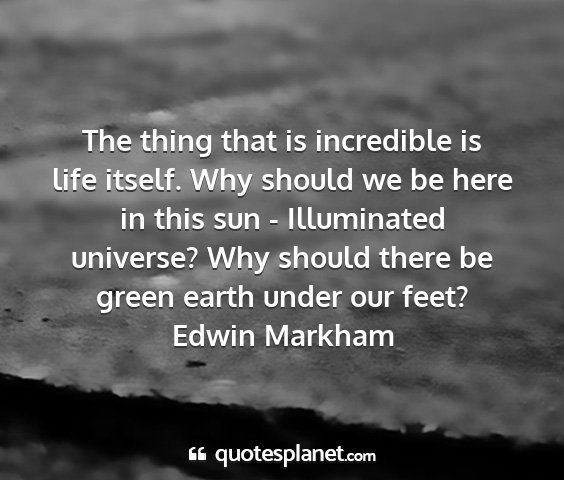 The thing that is incredible is life itself. Why should we be here in this sun - Illuminated universe? Why should there be green earth under our feet?Edwin Markham