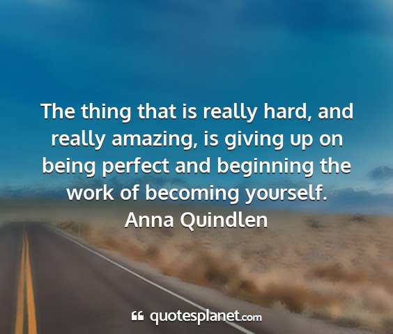 The thing that is really hard, and really amazing, is giving up on being perfect and beginning the work of becoming yourself.Anna Quindlen