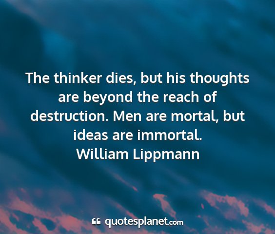 The thinker dies, but his thoughts are beyond the reach of destruction. Men are mortal, but ideas are immortal.William Lippmann