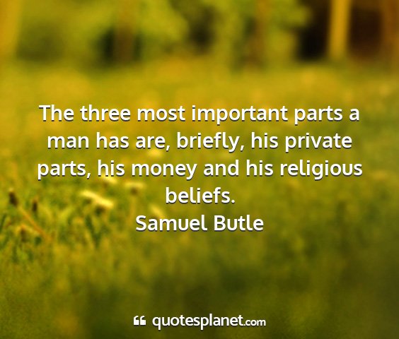 The three most important parts a man has are, briefly, his private parts, his money and his religious beliefs.Samuel Butle
