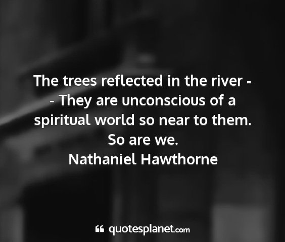 The trees reflected in the river - - They are unconscious of a spiritual world so near to them. So are we.Nathaniel Hawthorne