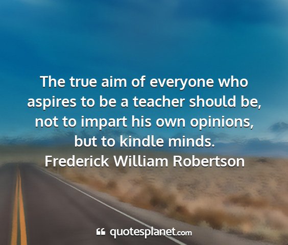 The true aim of everyone who aspires to be a teacher should be, not to impart his own opinions, but to kindle minds.Frederick William Robertson