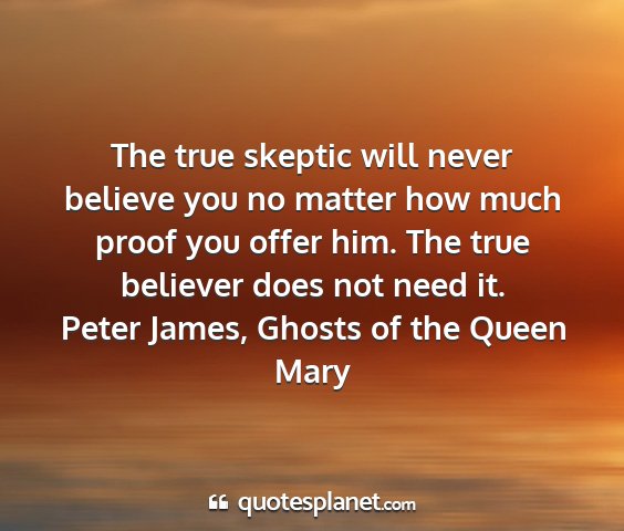 The true skeptic will never believe you no matter how much proof you offer him. The true believer does not need it.Peter James, Ghosts of the Queen Mary