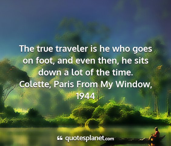 The true traveler is he who goes on foot, and even then, he sits down a lot of the time.Colette, Paris From My Window, 1944