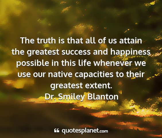 The truth is that all of us attain the greatest success and happiness possible in this life whenever we use our native capacities to their greatest extent.Dr. Smiley Blanton