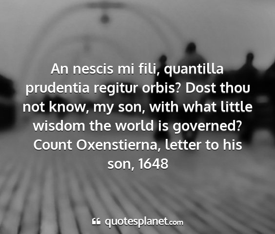 An nescis mi fili, quantilla prudentia regitur orbis? Dost thou not know, my son, with what little wisdom the world is governed?Count Oxenstierna, letter to his son, 1648