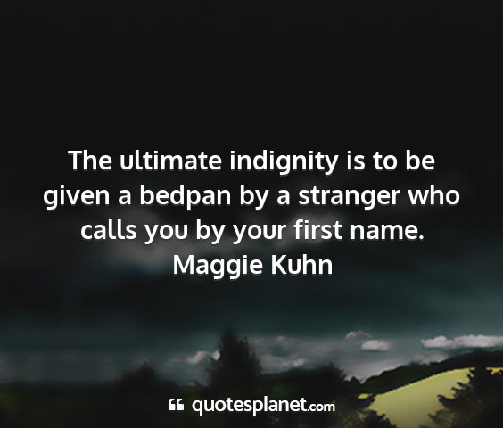 The ultimate indignity is to be given a bedpan by a stranger who calls you by your first name.Maggie Kuhn