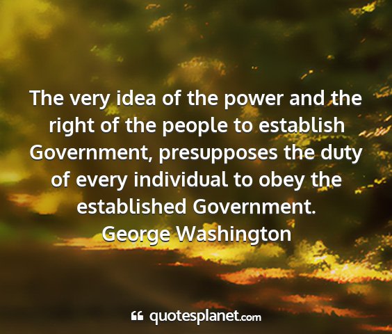 The very idea of the power and the right of the people to establish Government, presupposes the duty of every individual to obey the established Government.George Washington
