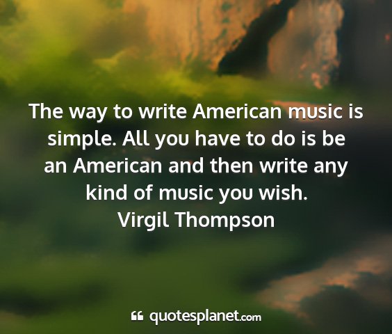 The way to write American music is simple. All you have to do is be an American and then write any kind of music you wish.Virgil Thompson