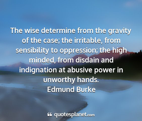 The wise determine from the gravity of the case; the irritable, from sensibility to oppression; the high minded, from disdain and indignation at abusive power in unworthy hands.Edmund Burke